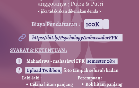Departemen Minat dan Bakat DEMA FPK UINSA menyelenggarakan Psychology Ambassador 2022 yang merupakan event tahunan pencarian putra dan putri FPK...