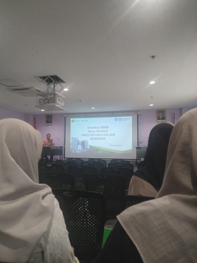 Pada hari Kamis, tanggal 28 November 2024 telah diadakan sosialisasi program magang MBKM tahun ajaran 2024/2025 di Auditorium lantai dua gedung FPK. Kegiatan ini dihadiri oleh Wakil Dekan I Bidang Akademik, Ketua dan Sekretaris prodi FPK, Kepala Lab, Kepala Jurusan dan mahasiswa prodi psikologi semester 5. Kegiatan ini memaparkan mengenai informasi terkait banyaknya pemberitaan yang simpang siur mengenai magang, transparansi kuota di setiap peminatan, hingga tempat magang di setiap peminatannya. Selain itu, di kegiatan ini wadek satu menekankan akan tetap menampung aspirasi dan pertanyaan mahasiswa, yang dilakukan di akhir kegiatan setelah pemaparan poin-poin dan informasi mengenai magang MBKM.
